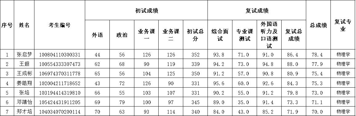 备注:复试成绩=综合面试×50%+专业课测试×30%+外语听力及口语面试×20%,复试成绩不合格(低于60分),不予录取。