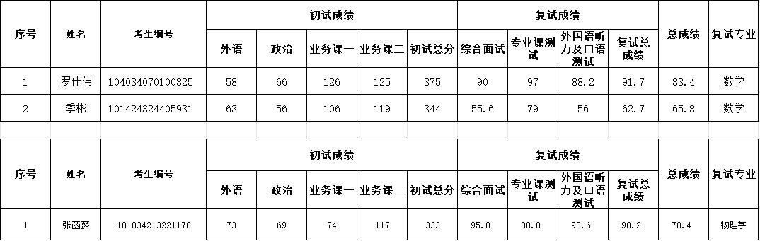 备注:复试成绩=综合面试×50%+专业课测试×30%+外语听力及口语面试×20%,复试成绩不合格(低于60分),不予录取。