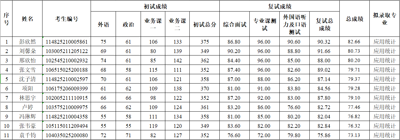 经考生初试、复试等各个环节,国产自拍 招生工作领导小组确认,现对拟录取的考生进行公示(详见下表),公示时间为2025年4月11日至4月17日(7天),如有疑义,请以书面的形式反映,反映问题要实事求是,署本人真实姓名。