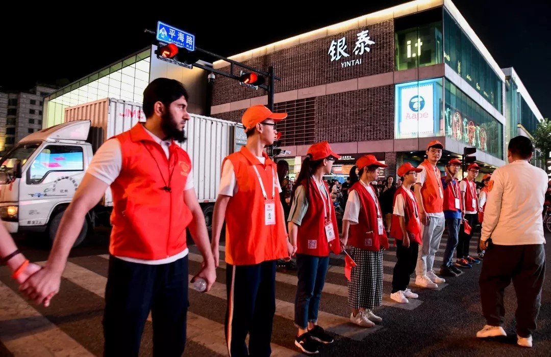 留学生,他们作为国际志愿者,连续七天参与到上城区湖滨步行街的志愿活动中。一句句“请快速通行”、“不要低头玩手机”等简短流利的中文提醒着行人和游客们注意安全,在秋意渐浓的夜晚温暖着每个人的心房。