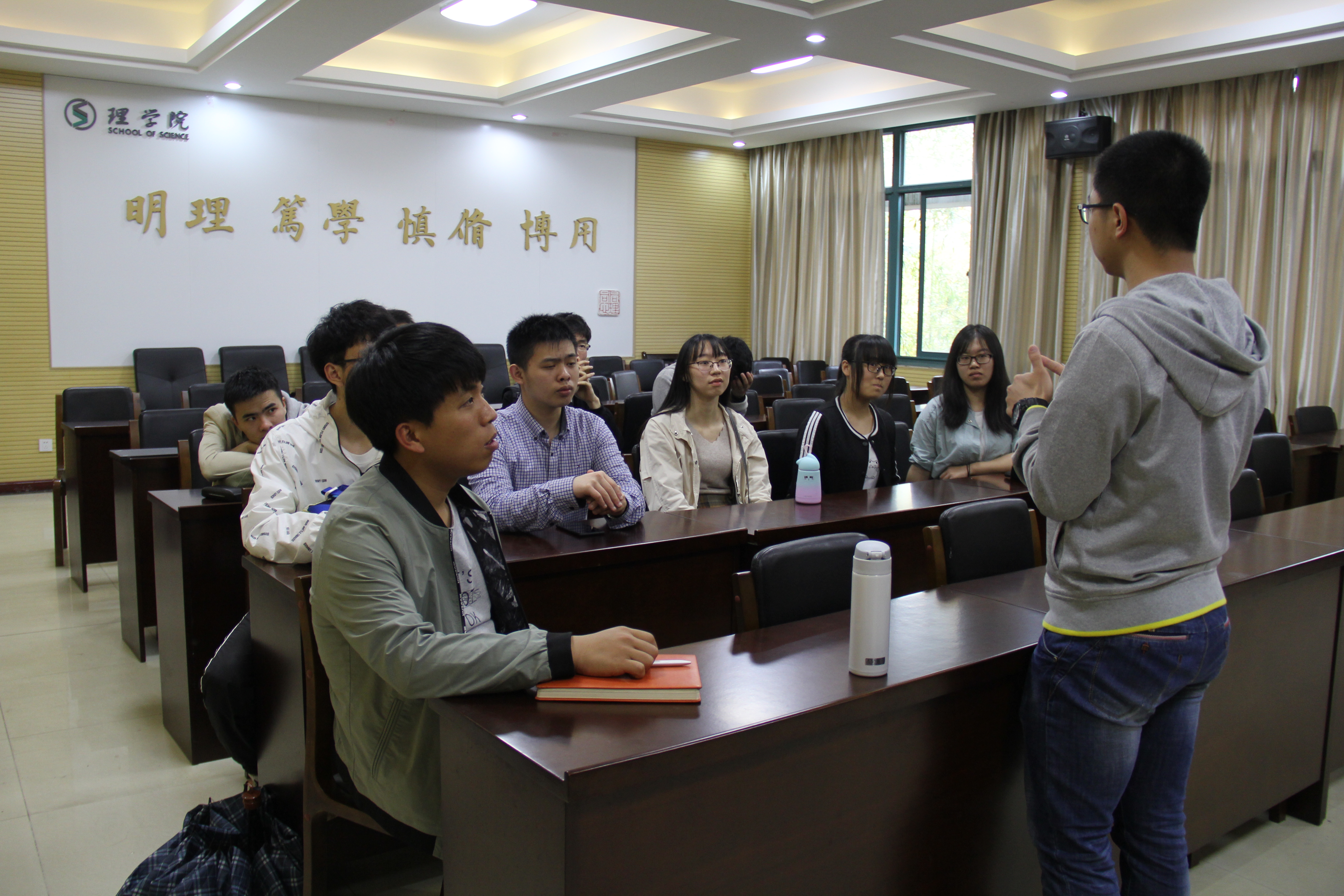 今年考取浙江大学研究生的信计142班王树一同学做交流汇报,2015级考研意向学生听取了报告。本次交流会由国产自拍