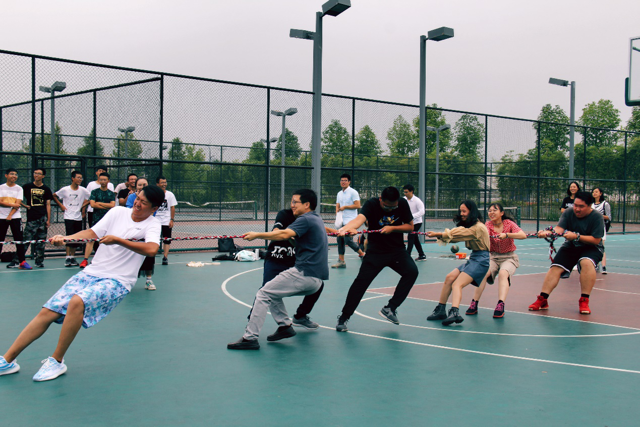 为调动同学们的活动热情,首先开展了小组拔河比赛。各小组代表通过剪刀石头布的方式决定比赛对手。每组成员由两名女生四名男生组成,第一名最终由具有明显体重优势的A组同学获得。