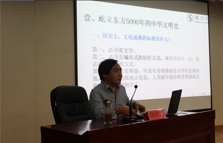 陶祥兴教授从世界文明发展、中国历史文化、数理知识运用、如何做科研等多方面引导同学们积极培养“视野、志向、兴趣、创新”四大意识,更以自身经验为例为大家深刻讲解了创新和实践的重要性。以宽广的未知世界和世界强国与数理强国的联系,强烈地激发了同学们对未来的美好憧憬,极大的激发了同学们的学习积极性。