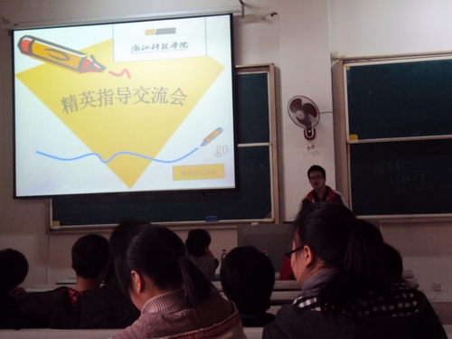 分团委副书记的吴晶学姐,结合自己丰富的干部经验,提出了大学学习要确定明确目标,真心喜欢自己的专业并自觉学习。同时,对于英语四、六级考试中重要部分——听力,她鼓励大家收听CCTV-9,UOA,special english等英语节目,看英文文章记单词也不失为一种好方法。
