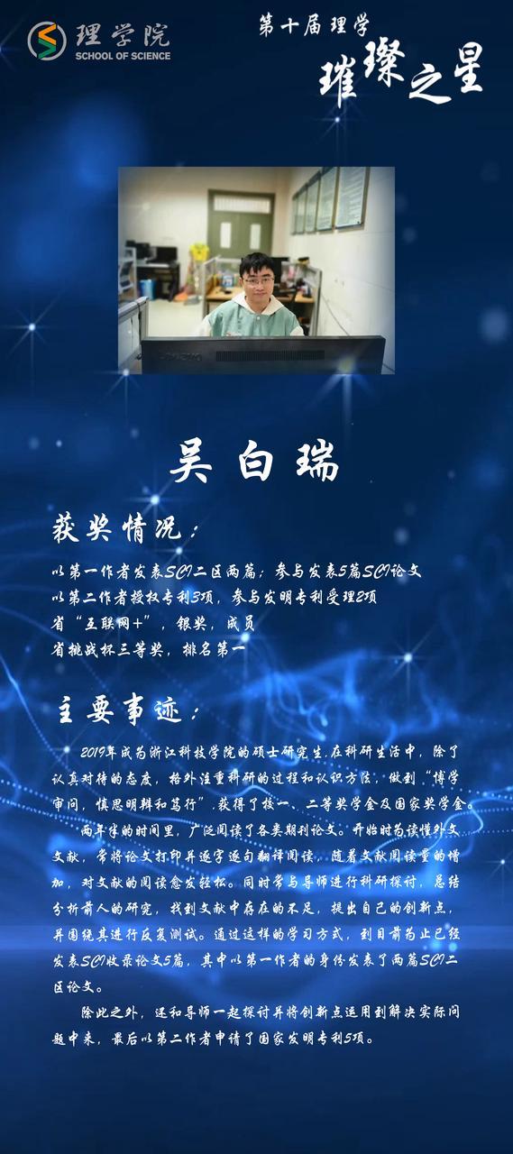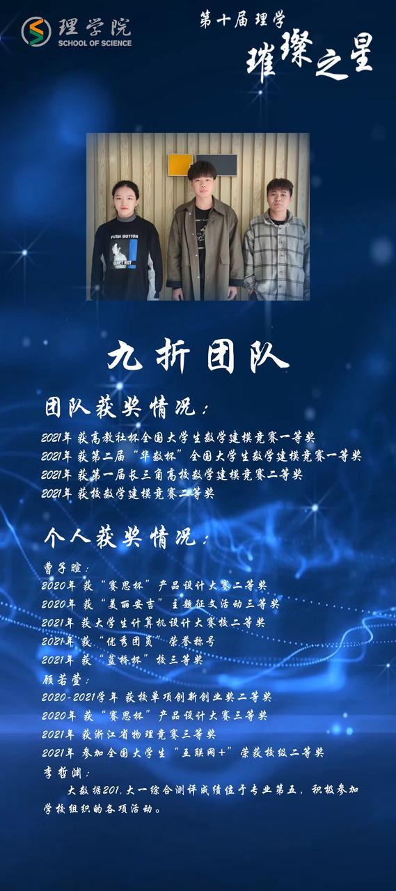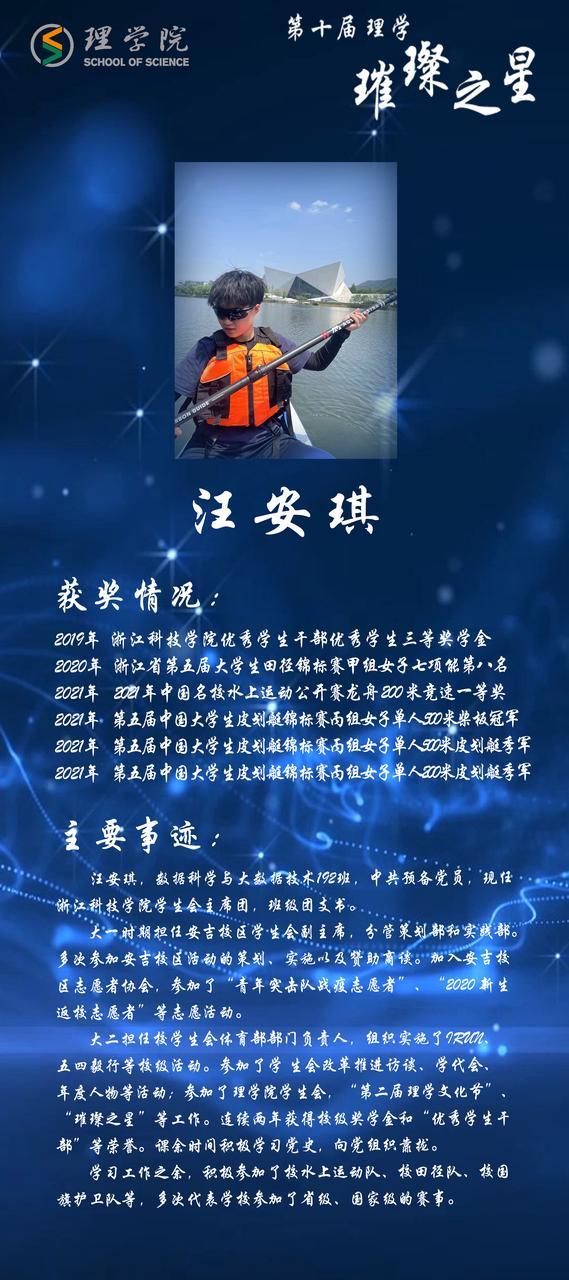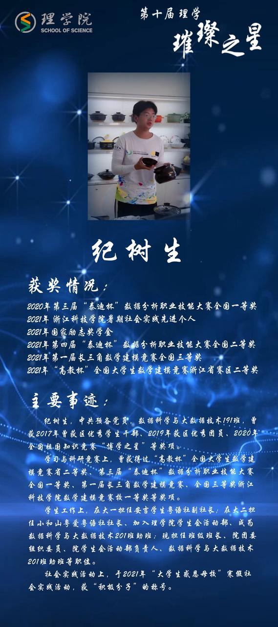 的宣传工作。数据科学与大数据技术(中法班)192班卢奕霖热爱舞蹈,获多项舞蹈奖项;勤奋学习,获奖学金,多种竞赛奖项等。数据科学与大数据技术191班纪树生担任班长、院团委组织委员、院学生会活动部负责人等多种职责,分享了他在学科竞赛道路上的成长之旅。应用物理191班研究生吴白瑞,发表多篇论文、拥有多项专利,他分享了他的科研道路。数据科学与大数据技术201班九折团队,拥有着“纸折九次,并非不可”勇于突破的探索精神,分享了他们获全国大学生数模竞赛一等奖的经验。数据科学与大数据技术192班汪安琪,凭借着自我管理和毅力,参与了多项体育赛事并获奖,特别是中国大学生皮划艇锦标赛冠军。