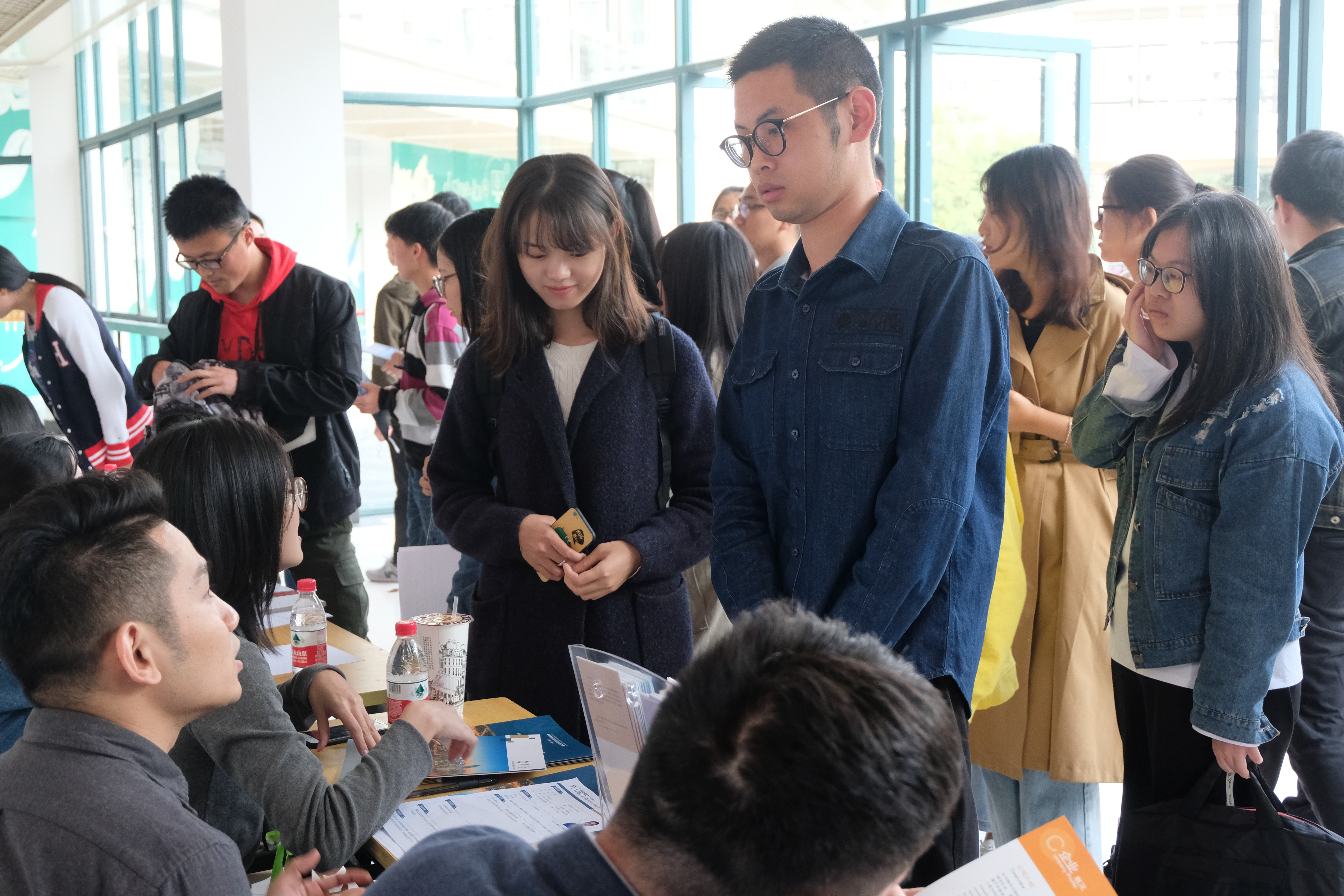 在前期主动联系优质企业9家,举办专场招聘会。动员会结束后,同学们立刻投身招聘会现场,通过“实战”切身体验了一把求职面试的感觉。