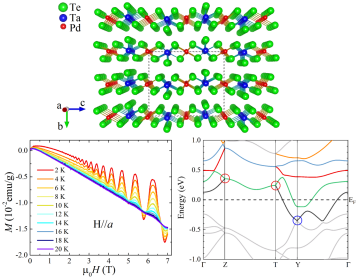 近年来发现的大部分拓扑材料都具有二维或三维的结构特征,具有准一维结构的拓扑材料很少见。作者通过自助溶剂法成功合成了具有准一维链状结构的TaPdTe5单晶,TaPdTe5不仅是首次被发现的新材料,而且实验上作者通过Shubnikov de Haas(SdH)和De Haas-van Alphen(DhvA)震荡证实了它是一种拓扑Dirac半金属,考虑到结构低维性带来的独特性质,其中的拓扑本质引人关注。上述研究得到了国家自然科学基金面上项目、浙江省自然科学基金一般项目,以及国家重点研发计划的资助。焦文鹤副教授是该论文的第一作者和通讯作者,国产自拍