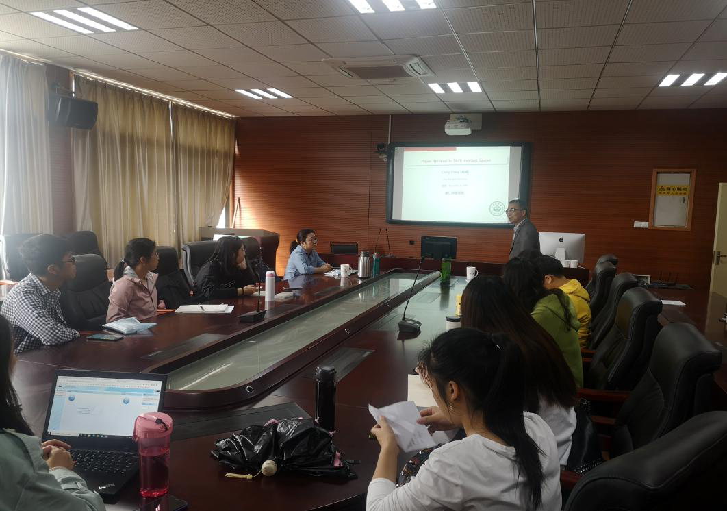 和山数学论坛,做了题为“平移不变空间中的相位恢复”的精彩学术报告。此次报告由数学系房启全副教授邀请,数学系和大数据系部分老师、研究生和部分本科生同学共同聆听了报告。