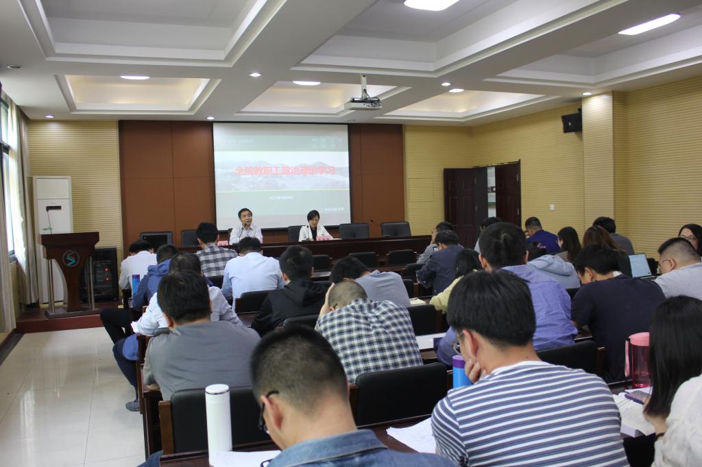 在A4-216会议室召开全院教职工大会暨教职工政治理论学习会,院党政领导、全体教职工参加。会议由院党委书记张掬婴主持。