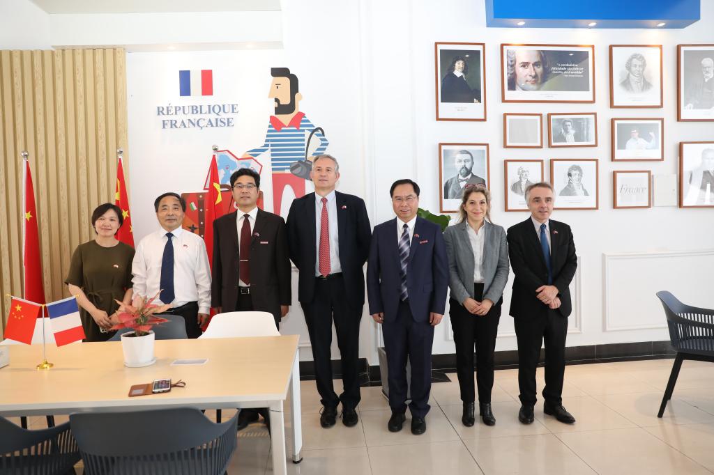 ,交流中法合作专业、参观中法文化走廊和实验室,校长赵东福、副校长单胜道、国际处等相关职能部门负责人陪同,国产自拍
