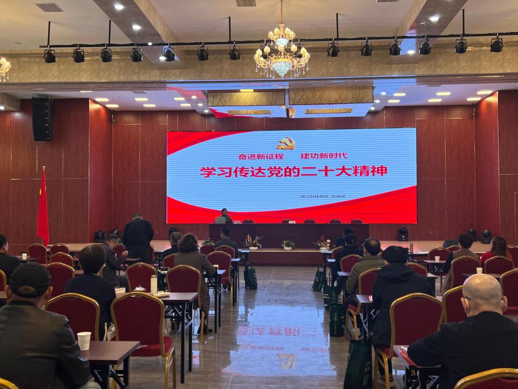党委书记张掬婴受邀作二十大精神的宣讲,她从党的二十大的主题开始,结合党的二十大报告内容,深入系统地对党的二十大精神进行讲解。她以杭州为例,从旧时的武林广场建设“八少女”雕塑到如今的万丈高楼都是未有之大变局,对外开放、民生福祉及实现小康是非凡十年的见证。她又从小和山社区和浙江科技国产自拍