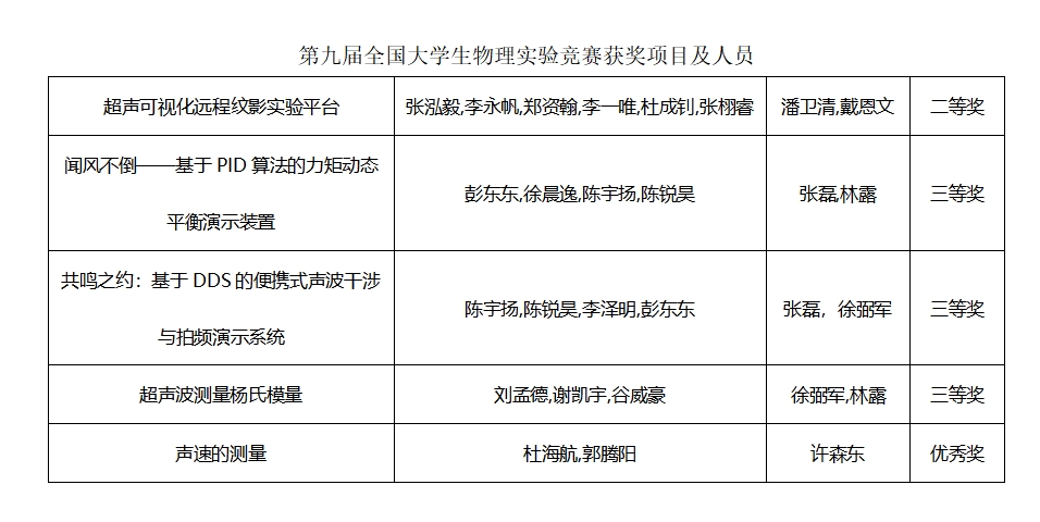第九届全国大学生物理实验竞赛获奖项目及人员