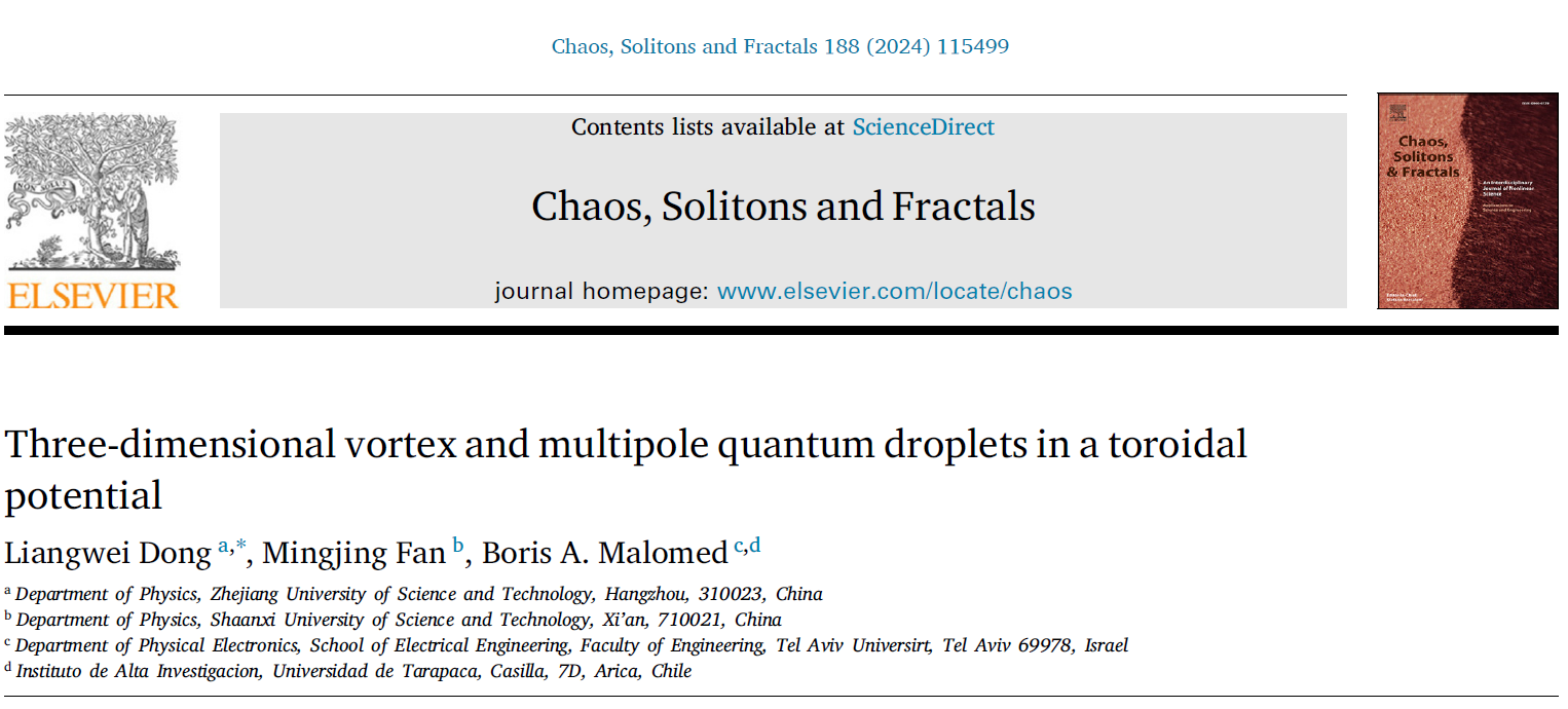 为论文第一单位。第二作者为范明晶硕士,第三作者为非线性科学领域著名科学家以色列特拉维夫大学Boris A. Malomed教授。