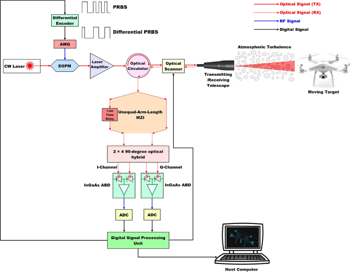 图2 差分伪随机相位调制连续波(DPR-PMCW)相干激光雷达系统原理图