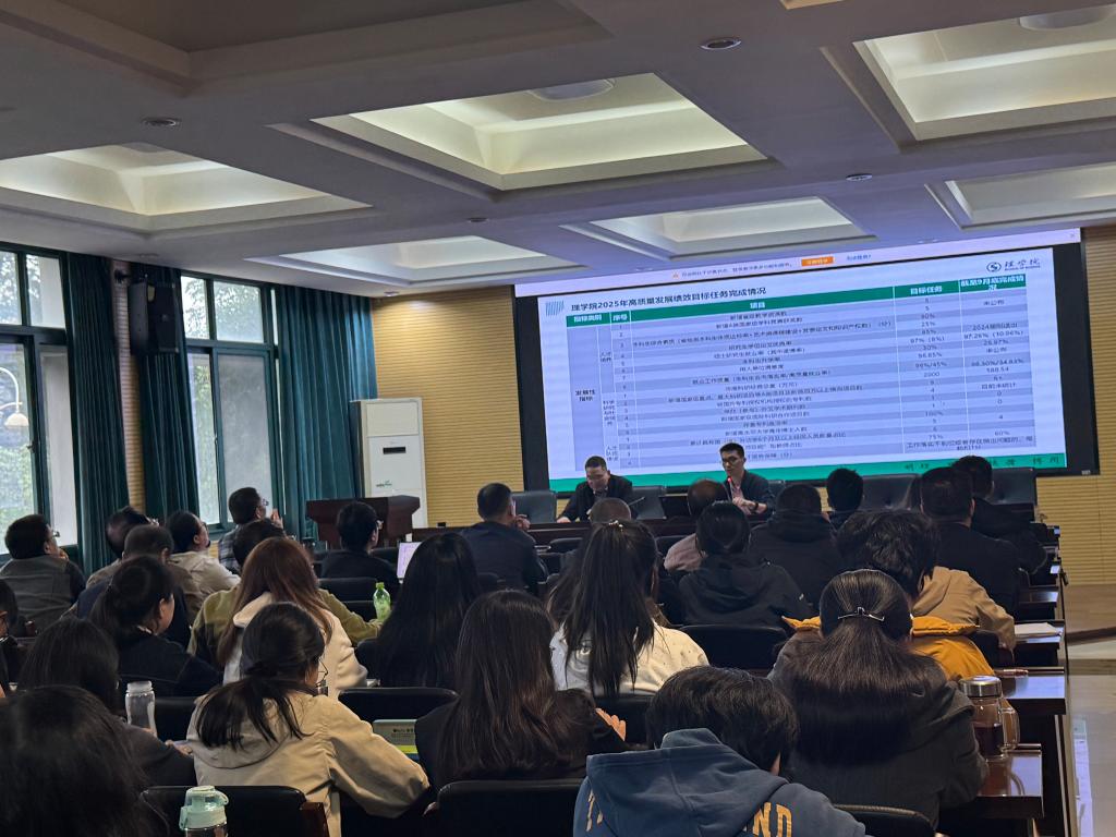 党委校内巡察和意识形态专项检查整改工作、“十五五”发展规划制定、强化安全管理、规范教师因私出国审批与兼职备案管理等几项重点工作作出要求,并重申了全院大会的纪律性与参与度。