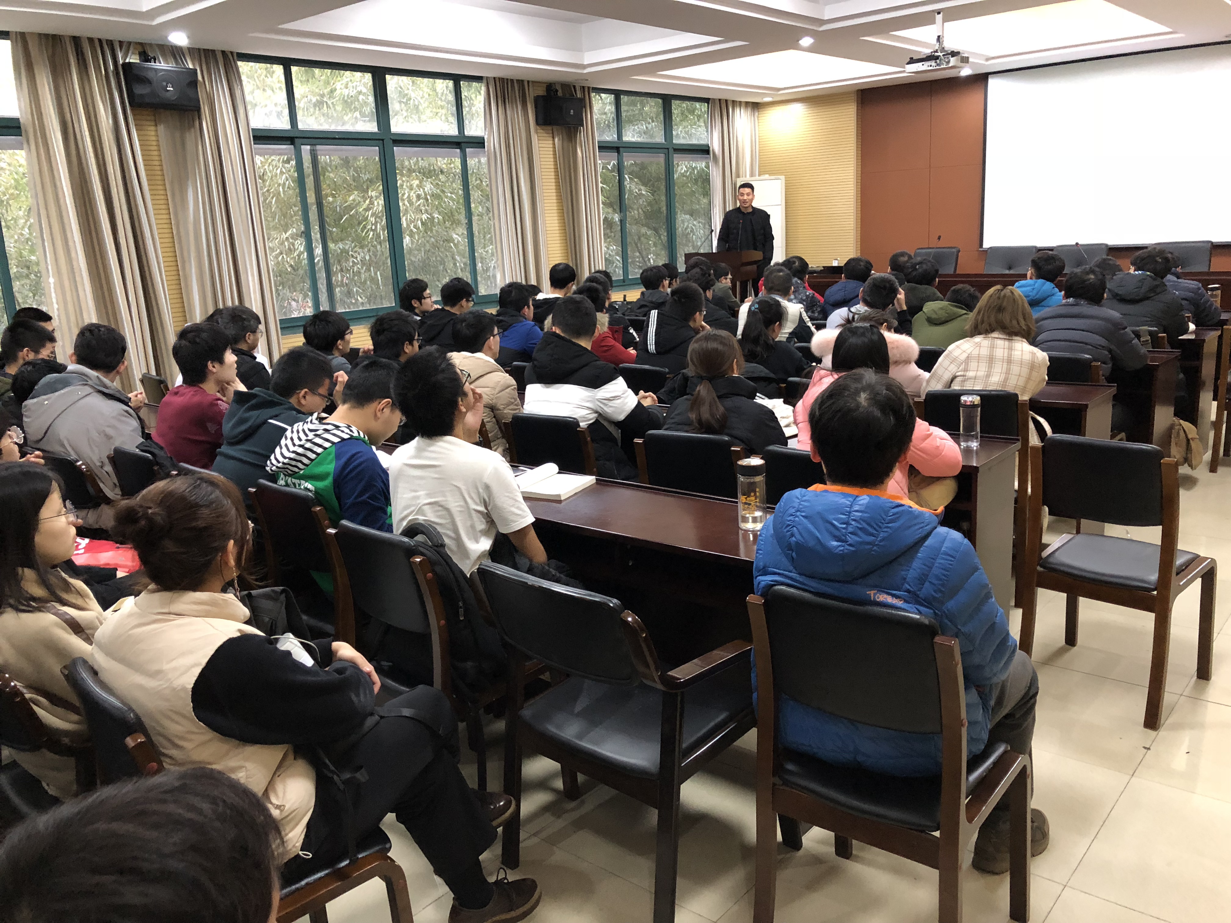 首先,焦文鹤老师做了考研动员的讲座,他强烈建议同学们要树立考研的信念,结合自身特点找准定位,持之以恒准备考研。焦老师分析了当下考研形势,并结合自己的考研经历,与同学们分享了一些考研经验和体会。其次,娄存忠学长与同学们分享了他考上浙江大学物理系的经历和体会,同学们积极与其交流讨论,现场气氛浓厚,同学们纷纷表示受益匪浅。