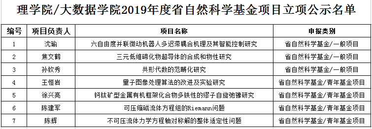 近日,浙江省科学技术厅、浙江省自然科学基金委员会发布“关于2019年度浙江省自然科学基金拟资助项目公示的通知”,国产自拍 共有7个项目获浙江省自然科学基金项目立项。