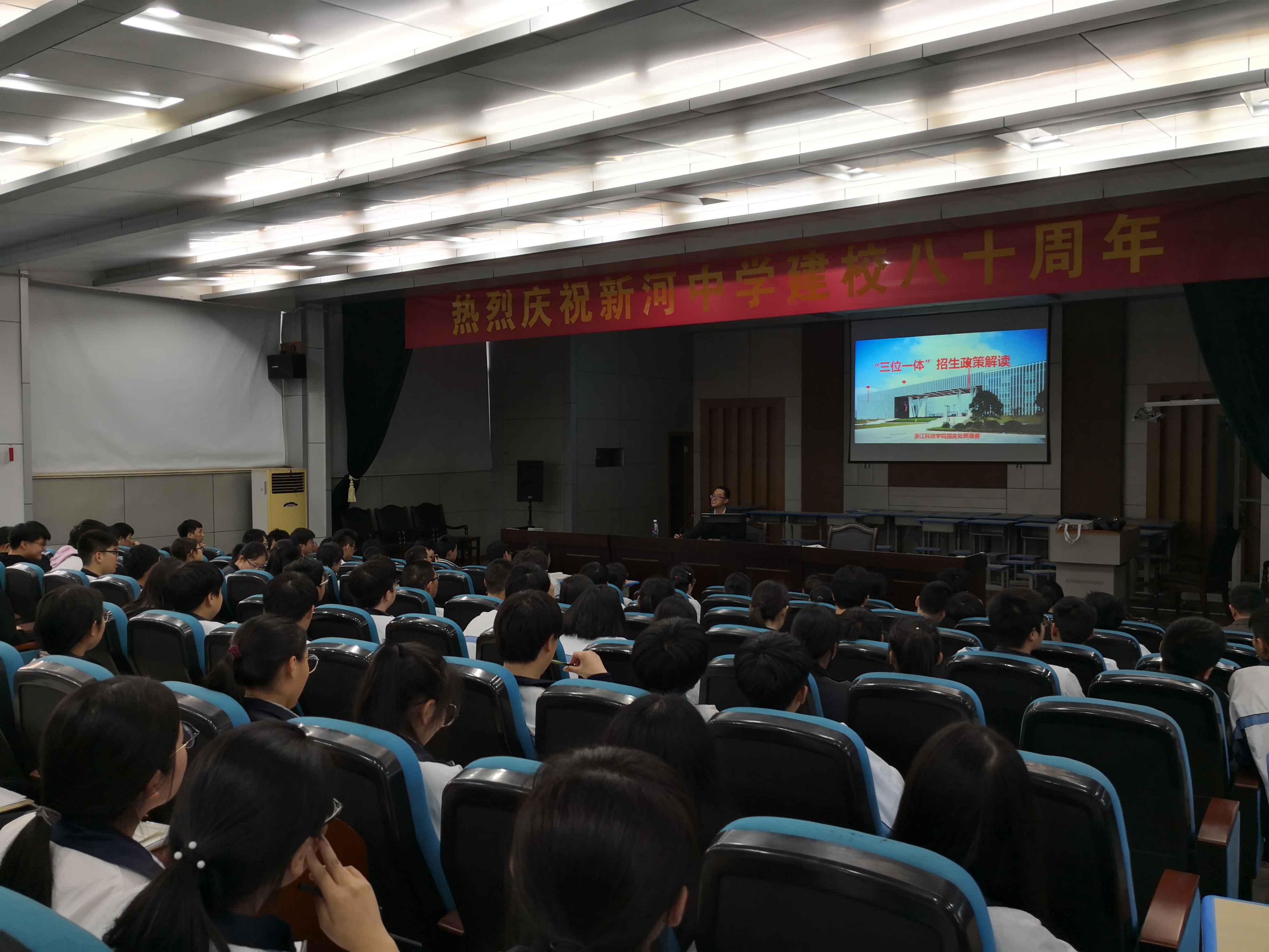 的200余名中学生参加了咨询宣讲会,新河中学教务办主任陶正出席并主持了本次咨询宣讲会。