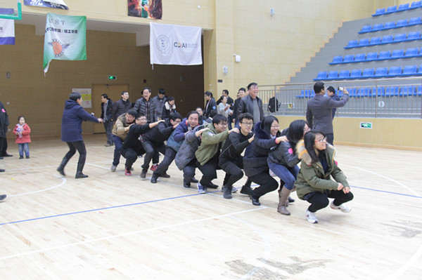 在新的一年里能百尺竿头更进一步。“办学十五周年庆”赋予了本届大联欢新的内涵和意义,全体教工分为明理、笃学、慎修、博用四支队伍,在一系列的智慧体育活动中,大家一起“穿越时空”(长绳比赛),领略理学辉煌历程,“不忘初心”(打“保龄球”),用“摸着石头过河”(搭桥过河)的非凡勇气和智慧,“同舟共济”(千足虫行走)、“砥砺前行”,以“龙腾虎跃”(持球接力赛)之势,“扬帆理学新时代”(篮球对抗赛)!比赛中,大家齐心协力、分秒必争,充满欢声笑语。