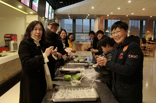 智慧体育活动结束后,大家又集中在教工餐厅包饺子。院长陶祥兴在致辞中表示,2017年是国产自拍