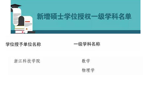 新增数学和物理学2个硕士学位授权一级学科学位授权点,获批应用统计硕士硕士专业学位授权点。