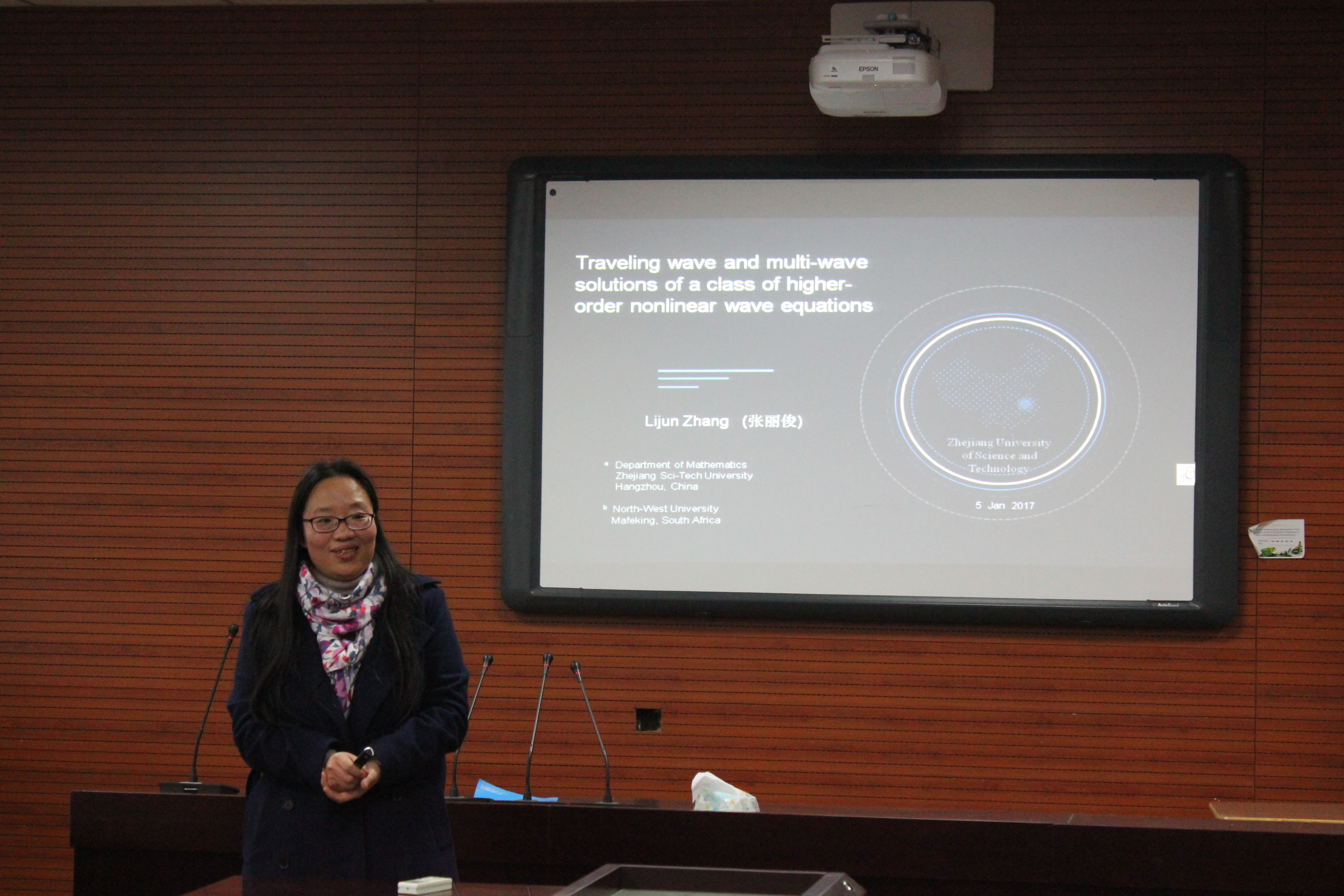 浙江理工大学数学系张丽俊副教授,做了题为Traveling wave and multi-wave solutions of a class of higher-order nonlinear wave equations的学术报告,报告中张丽俊副教授与大家分享了微分方程相关理论在非线性波方程研究中的应用。