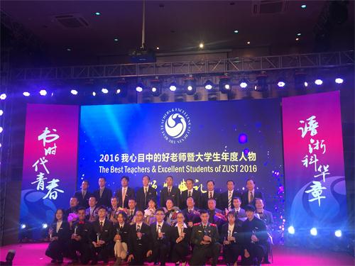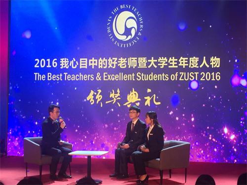 第六届我心目中的好老师暨2016年大学生年度人物颁奖典礼在闻理园A4-122拉开帷幕。校党委书记龚建立、校长叶高翔、校党委副书记周加敏、校党委副书记赵东福、副校长单胜道、副校长郑友取、副校长万健、校党委委员研工部部长毛建卫、校长助理鲁伟权、团市委副书记马利阳等领导及嘉宾应邀出席典礼并为获奖者颁奖。
