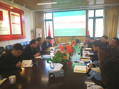 陶祥兴表示,要把学习传达贯彻落实党的十九届四中全会精神作为当前和今后一个时期内的一项首要政治任务来抓。一要深刻领会精神实质,牢牢把握核心要义,充分认识十九届四中全会的重大意义;二要提高政治站位,坚持把学习传达贯彻党的十九届四中全会精神与正在开展的“不忘初心、牢记使命”主题教育相结合,坚持读原文、悟原理,切实做到学懂弄通做实;三要以学习贯彻党的十九届四中全会精神为动力,不断加强党建引领,结合年度党政工作要点,对“五院一体”建设推进等重点工作认真梳理、扎实推进,凝心聚力,逐项落实,确保全面完成年度目标考核要求。