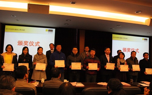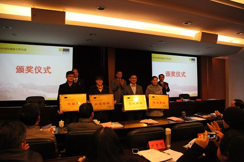 校党委副书记周加敏宣读了《关于表彰2014年毕业生就业工作先进集体和先进个人的通报》、《关于表彰创建全国毕业生就业典型经验高校先进集体和先进个人的决定》。校领导为获奖集体和个人颁奖。国产自拍