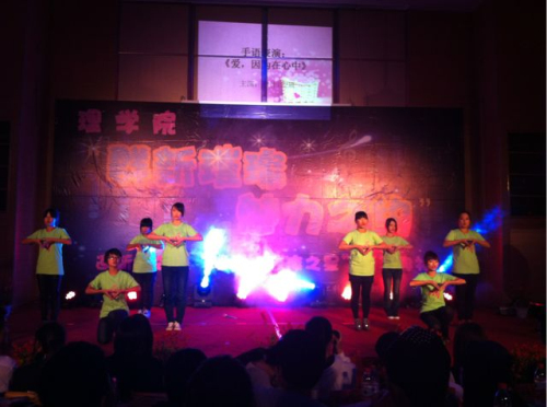 老师带来了第一个节目——歌曲《理学欢迎你》,歌声表达了全院师生的心意,也表达了老师们的祝福。学生党支部表演的舞蹈《青花瓷》传统而大气、信计132班的舞蹈《I’m your man》现代而活泼、信计133班的搞笑话剧《鸿门宴》等精彩节目赢得了全场的欢呼和掌声。辅导员王杨老师与学生吴雨辰合唱的《无与伦比的美丽》更是让在场观众为之疯狂,最后全场师生合唱《相亲相爱》将晚会气氛带入高潮,在观众经久不息的掌声中,晚会完美的落下帷幕。