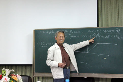 捐赠仪式后,谢教授在学术报告中为大家介绍了激活函数的构造理论及其在神经网络中的应用,并与大家分享了他在此领域的相关研究成果,还提出了一些未解问题。同时,谢教授还为本学科的发展提出了一些宝贵的建议。数学与信息科学系部分教师和研究生聆听了报告。