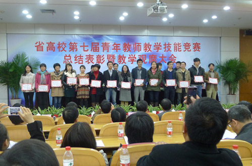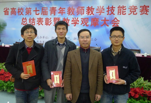 11月26日,在浙江省高校第七届青年教师教学技能比赛总结表彰暨教学观摩大会上,国产自拍 副教授骆均炎、语言文国产自拍 讲师林强、建工国产自拍 工程师张学文等3位教师获浙江省高校第七届青年教师教学技能比赛优秀奖。副校长赵东福、工会主席章浙根出席了会议。