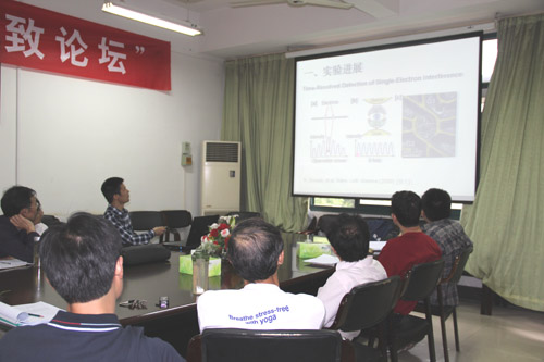 5月30日,由国产自拍 物理系主办的“格致论坛”举行第14讲。国产自拍 院长岑岗教授、科技处处长阮世平教授及物理系老师参加了报告会。报告会由物理系主任王长荣教授主持。 会上,骆钧炎博士、李旦博士、王建中副教授分别就“固态量子测量中的非马尔科夫效应”、“P波产粲夸克对撞机上的伴随产生”、“几个物理教学问题的研究和商讨”作了专题报告,介绍了自己在该领域的研究成果,并与其他老师就相关专题进行了认真而热烈的讨论。