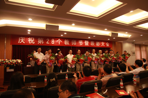 隆重召开庆祝第28个教师节暨先进表彰大会。会议在学生合唱队为老师们送上的悠扬歌声中开始。会议由校党委副书记陈根芳主持。
