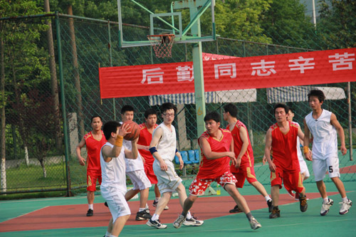 篮球员经验丰富,个人突破能力较强;后勤公司篮球队员则年轻力胜,焕发出蓬勃的朝气。双方你来我往,充分发扬“友谊第一、比赛第二”的精神,既有人盯人、个对个的严密防守,又有个人突破的犀利进攻,整场比赛精彩不断。队员们熟练的球技、团结协作的精神不时赢得场下阵阵掌声,最终后勤公司取得胜利。