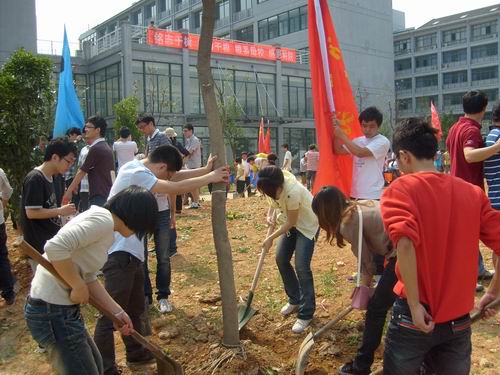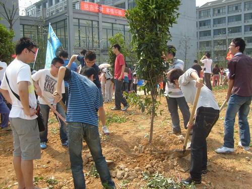 党总支书记苗红亚和就业辅导员与毕业生代表一起在习得园北侧栽下了香樟树和桂花树,以此表达2011届全体毕业生对母校的感激和无限留恋之情,纪念大学四年的难忘时光。
