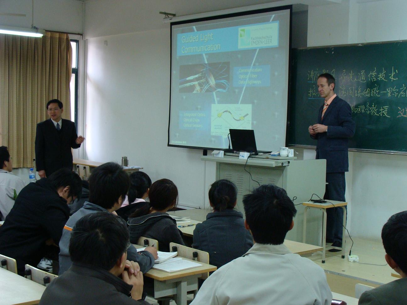 的工作访问,于3月31日离杭。Brückner教授在访问期间与副院长岑岗教授、阮世平教授就进一步合作进行了会谈;为08级应用物理国际班同学做了“应用物理基础”的系列讲座;参观了国产自拍