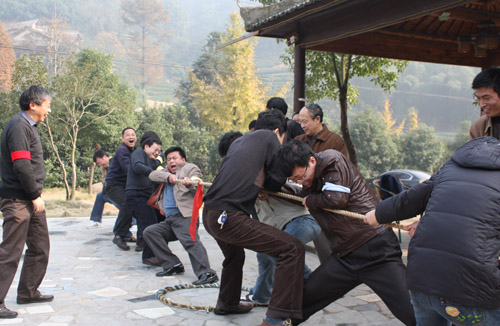 党的建设的意见”的有关情况,并布置了学习任务。她要求各支部要组织党员认真学习党的十七届四中全会公报和“中共中央关于加强和改进新形势下党的建设若干重大问题的决定”。每位党员都要加强党的理论学习,注重提高自身素质,充分发挥党员的先锋模范带头作用。随后,大家分四组开展了拔河、踢毽子、跳绳、两人三腿接力跑等丰富多彩的娱乐竞赛活动。
