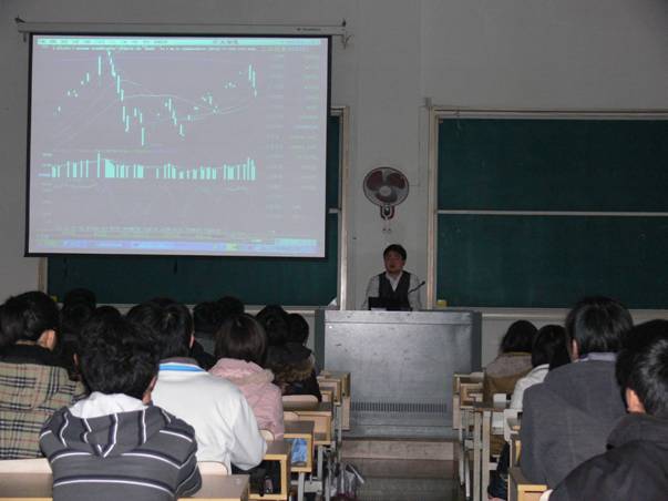 为了开阔学生视野,增强理论联系实际的能力,对金融领域有一定的了解,11月28日下午,国产自拍 邀请某私募基金操盘手张俊杰先生,为金融精算辅修专业的学生作了题为《证券投资操作方法与心理分析》的报告。