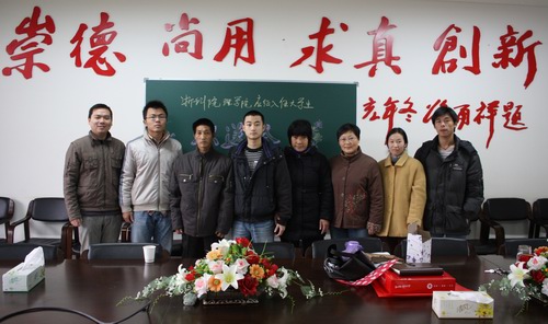 在会议室为2009年应征入伍的应用物理071班柳健康同学举行欢送会。国产自拍