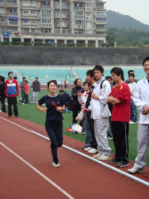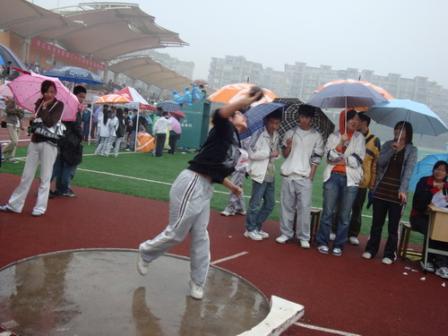 共有32名教职工运动员、82名学生运动员参赛。运动员们拼出了自信、毅力、勇气,战绩比往届进步了不少。其中信计071班的孙晓蕾同学一举夺得女子铅球第二名。教工方面更是旗开得胜,邓学明老师摘得男子1500米桂冠,混合4*100接力第一也被我们收入囊中。最后,教工团体总分屈居全校第四,学生团体获校“精神文明奖”。