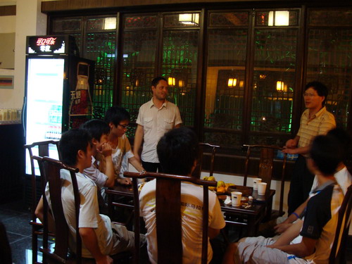 党总支书记苗红亚、副院长岑岗、阮世平、远道而来的德国科堡应用科学大学物理工程系Holger. Meihard博士、教师代表和辅导员出席。全体08级外省新生和06级、07级外省老生代表参加了座谈。活动由苗红亚主持。