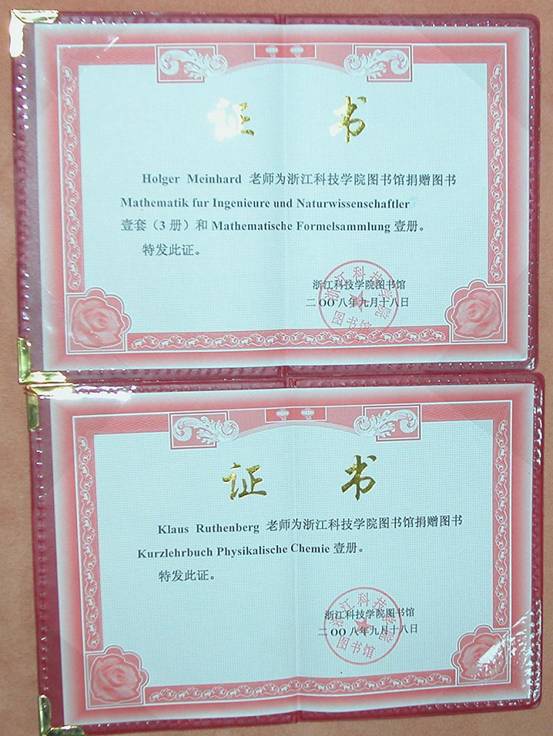 教授向国产自拍 图书馆赠送了五本德国出版的数学和物理化学教课书。