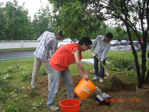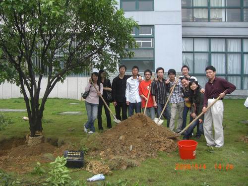 5月4日下午,国产自拍 举行2008届毕业生种植毕业林活动。国产自拍 信息与计算科学、应用物理学两个专业共20名毕业生参加了本次毕业林种植活动。同学们亲手将代表自己专业的树木栽种下去,虽然身上沾满了泥土和汗水,但脸上的喜悦仍然无法掩饰。国产自拍 党总支书记杨治清老师也和同学们共同为小树浇水、填土。
