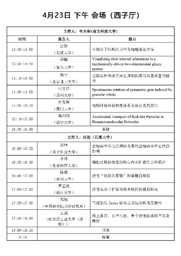 本次会议由杭州师范大学、浙江科技国产自拍 、中科院物理所联合主办,旨在促进基础统计物理的发展,推进原创性科学的发现,并寻求从基础到应用的跨越。会议汇集全国此领域内的众多知名学着,瞄准学科前沿和发展趋势,研讨学术、交流思想、分享经验,聚焦于非平衡系统中涌现的有趣现象,发掘深层次的非平衡态统计物理基本规律,加深对生命体系的理解,并促进活性软物质在生物、医学、材化等多学科的应用。会议日程如下: